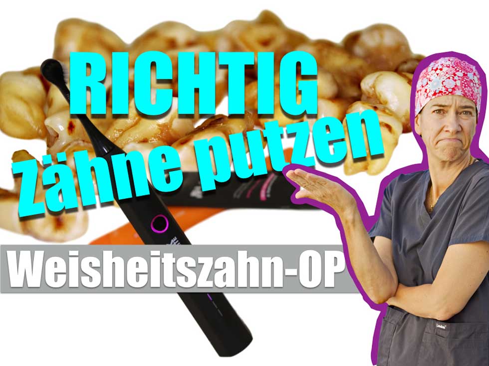 Am Anfang geht der Mund noch nicht richtig auf und Du wirst vielleicht Angst haben, wie gewohnt die Zahnbürste zu benutzen. Aber keine Sorge! Erstens ist die Wunde gut vernäht. Zweitens sagt Dir Dein Körper, was geht und was nicht.